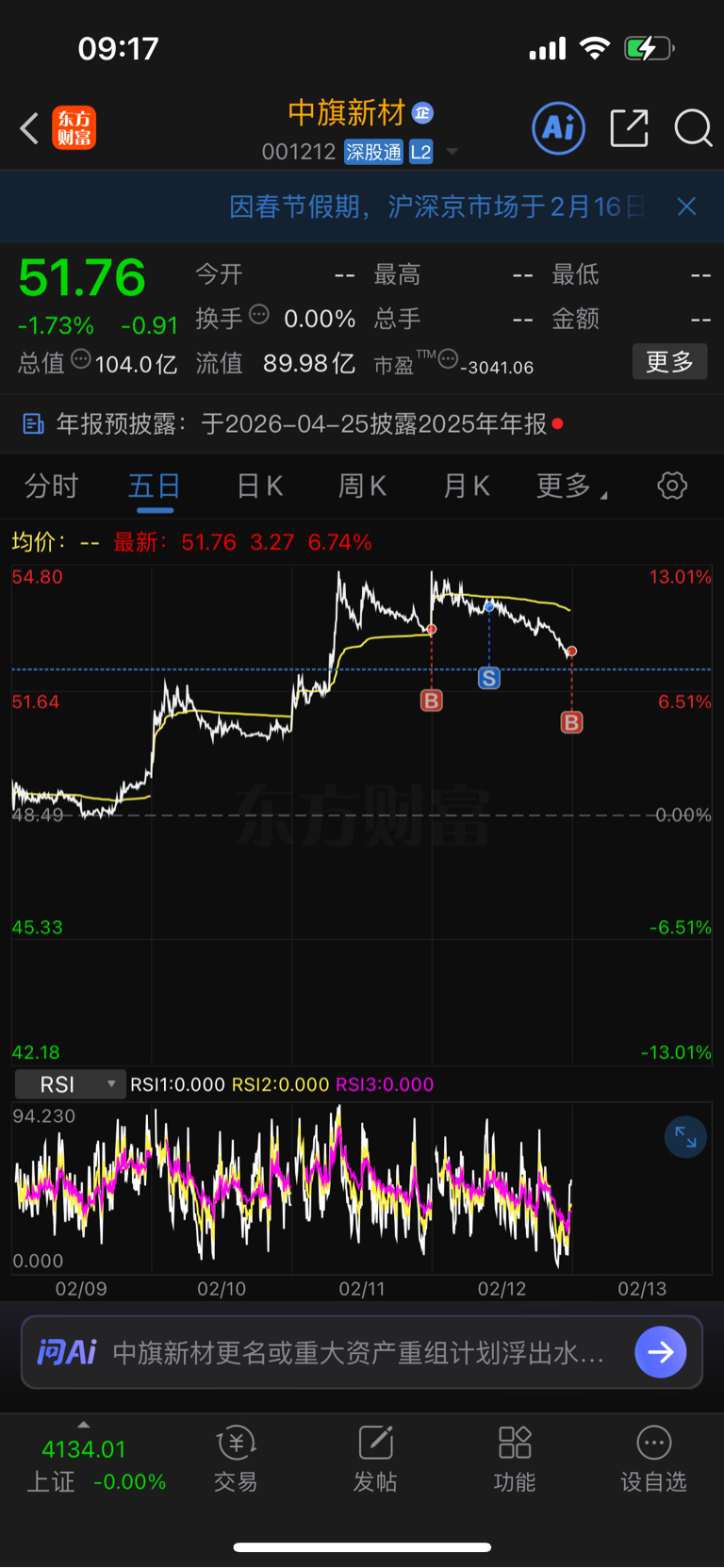 $中旗新材(SZ001212)$ 昨天卖出尾盘接回,今天是跌,那就是耍流氓。