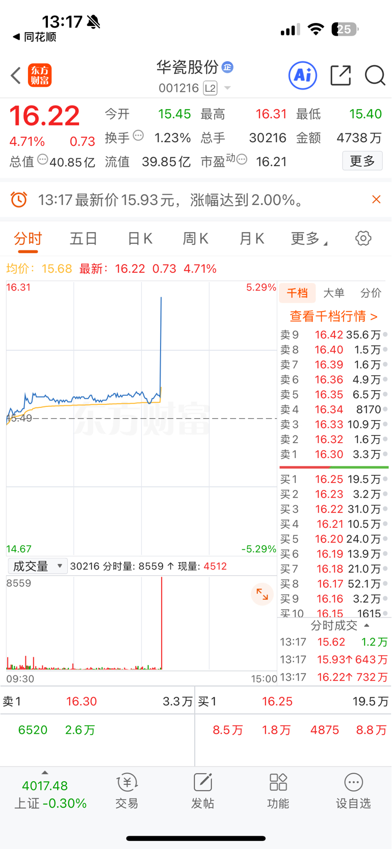 早上被一样的走势先套了,下午看到华瓷没空仓位了