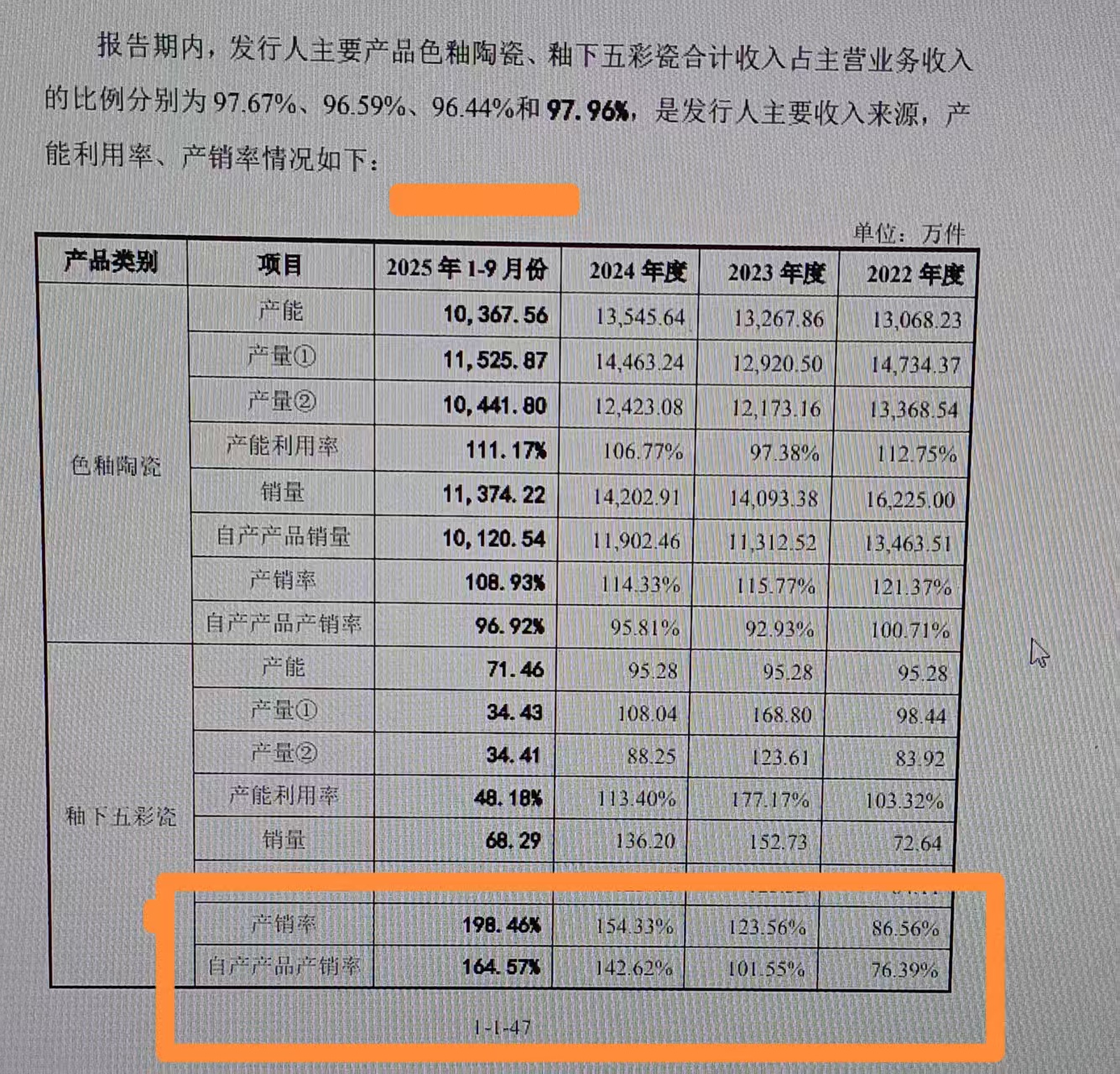 2025年1到9月份华瓷产销率大幅提升:分别为198.46%和164.57%供不应求