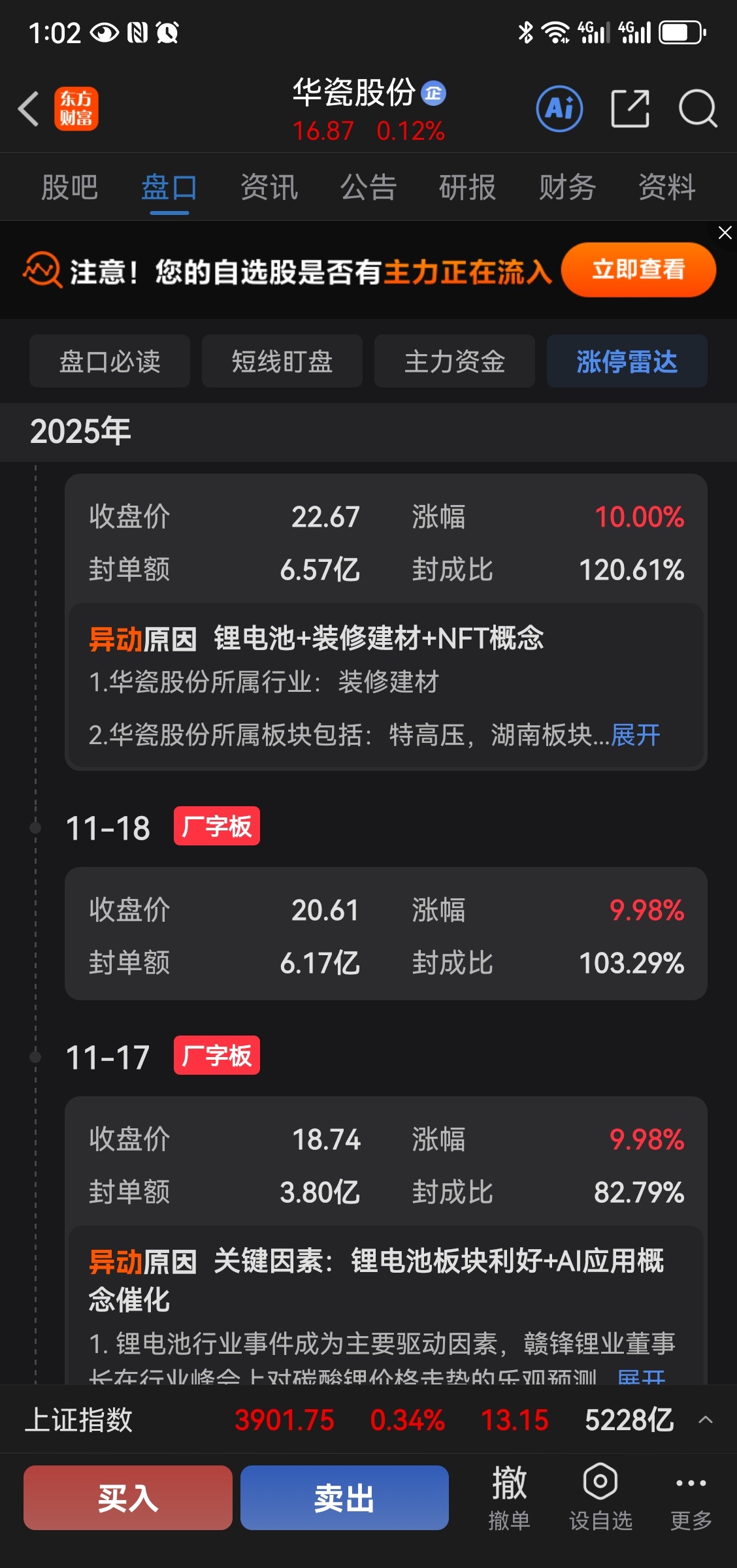 $华瓷股份(SZ001216)$ 底部区域介入了!低点不断上移就好