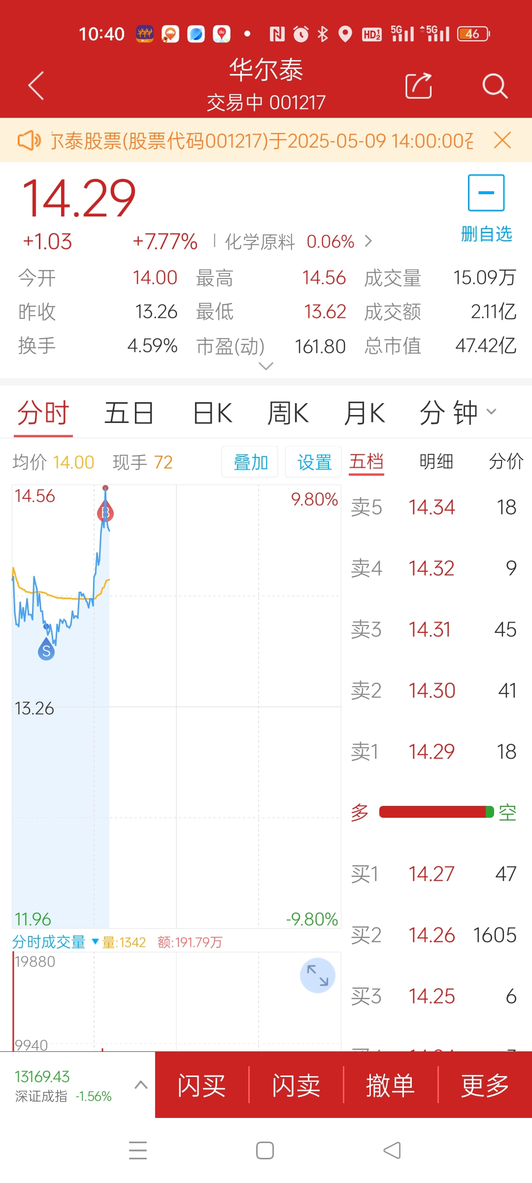 $华尔泰(SZ001217)$  今天像吃了一样,我真的是