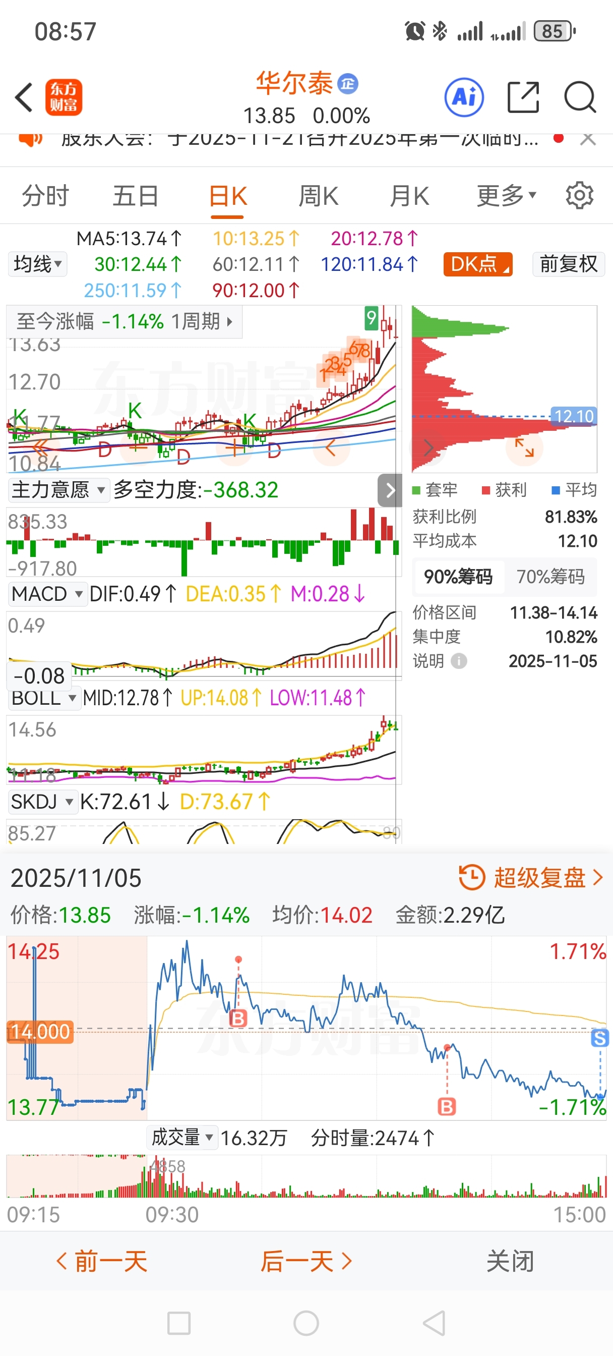$华尔泰(SZ001217)$ 昨天做T,加了点仓,后面手贱,尾盘把底仓清了,我对我太无语了!