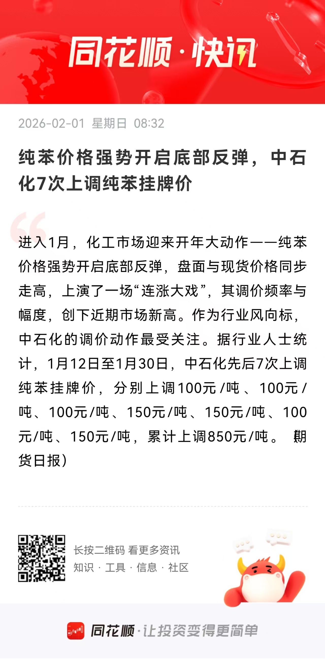 华尔泰年产纯苯20万,近期此产品价格爆涨过年了又是烟花爆竹概念,还有化工方向最热