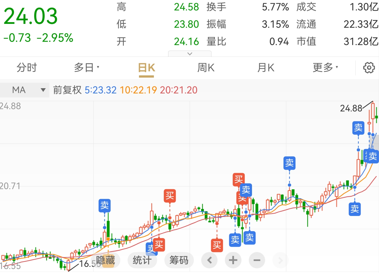 $丽臣实业(SZ001218)$ 炮灰们,看看成熟玩家面对股价上涨是怎么处理的吧!改变追涨的臭毛病,你有资格在股市里面长期生存。