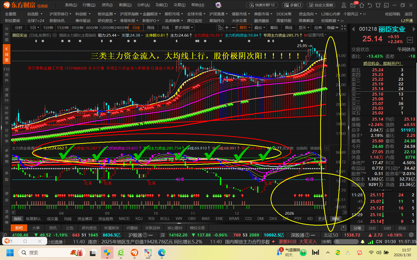 丽臣实业今天三类不同的主力资金同时流入!!!!