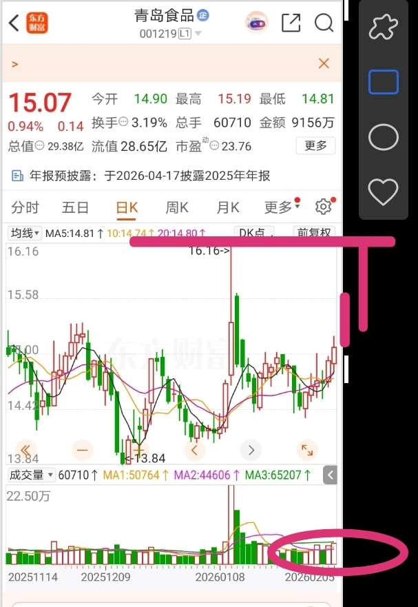 $青岛食品(SZ001219)$ 明天青岛大概率会继续向上,今天大盘暴跌它不为所动,说明筹码锁定很好,明日中阳甚至有涨停的可能,庄家波段很活跃,之前也是好几次类似的动作,拿住!明日如果小红或者绿盘,都可以加仓干。