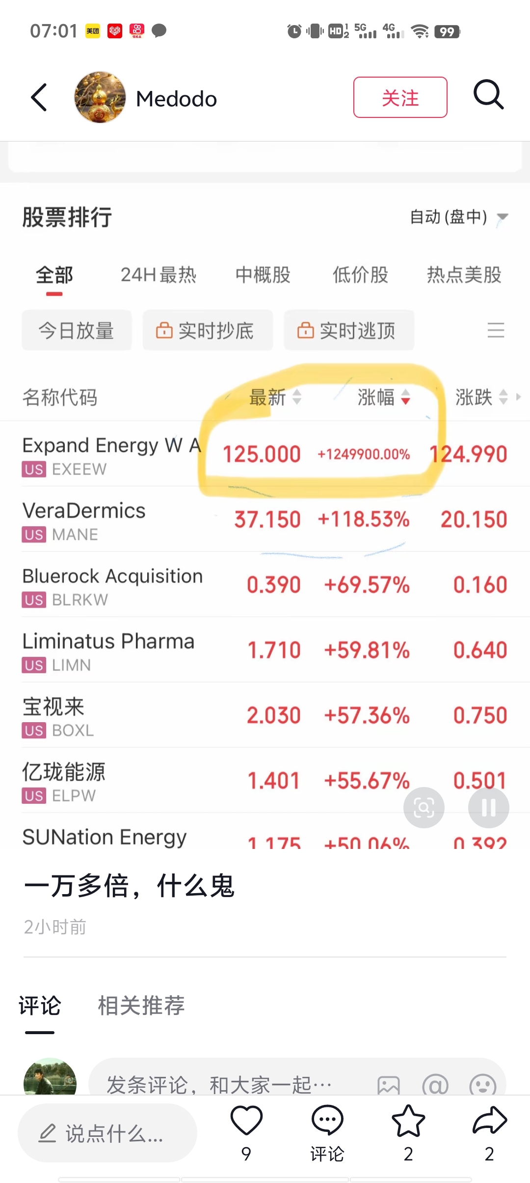 今天一个美股涨了一万倍,太不可思议了,羡慕。