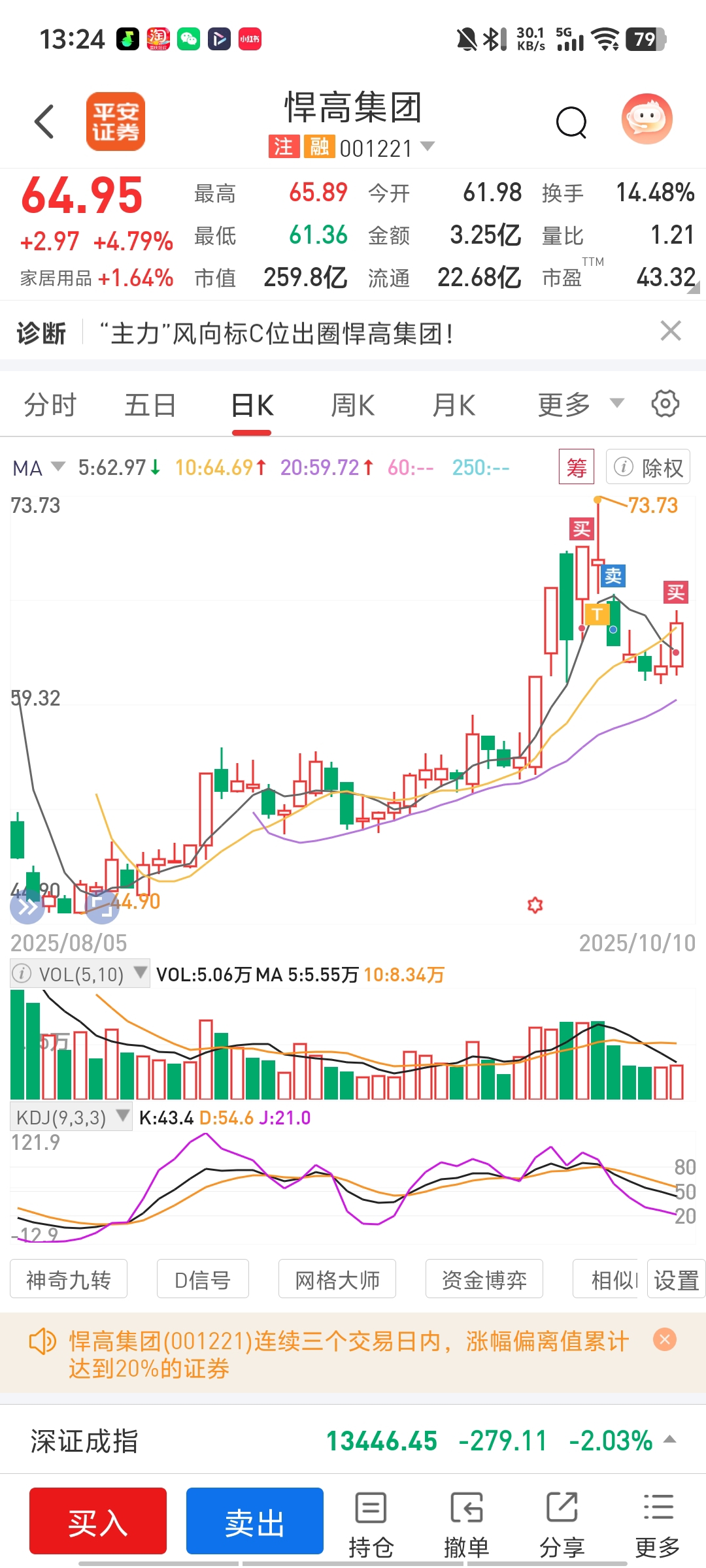 $悍高集团(SZ001221)$ 老朋友我又来了,每次买点可以,卖点卡不准