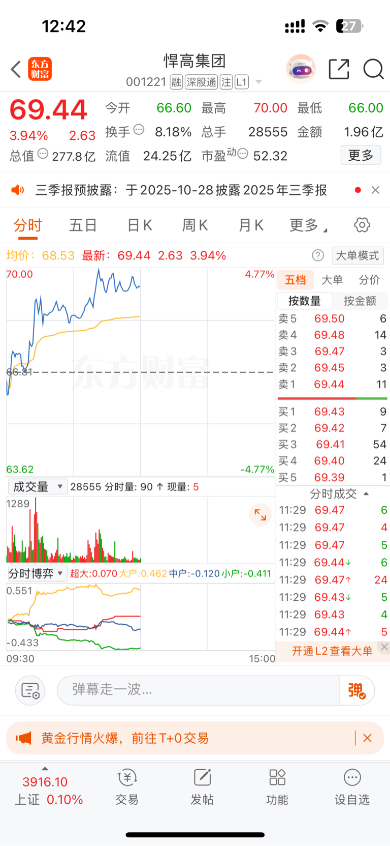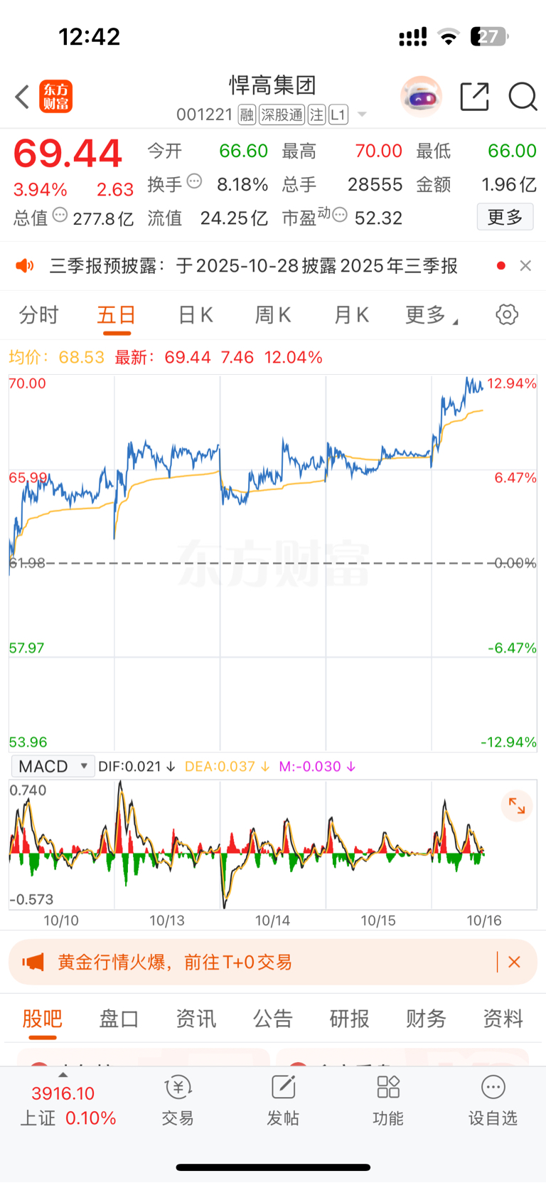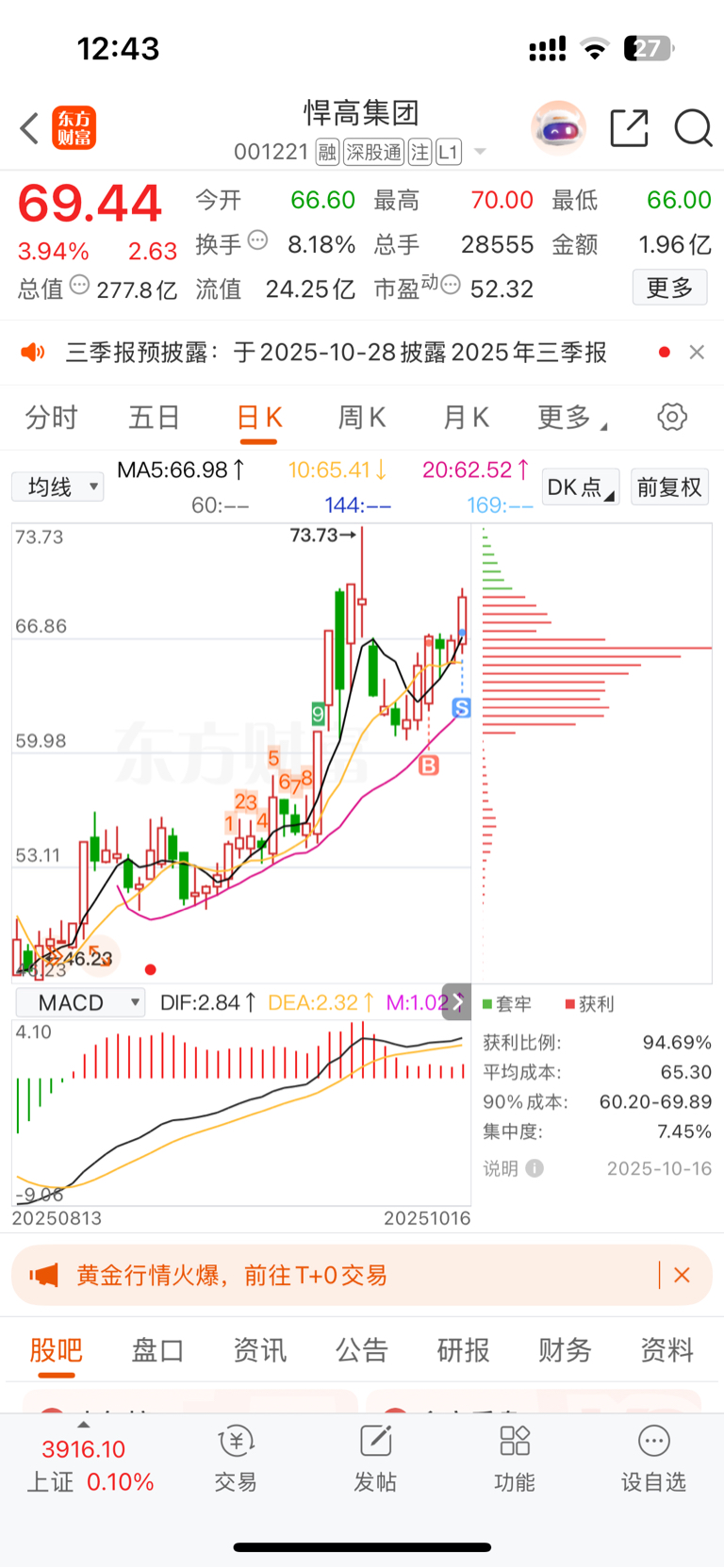 守了几天,开盘出了,赚了几杯奶茶。上午最高点到了70。怎么手就拿不住啊