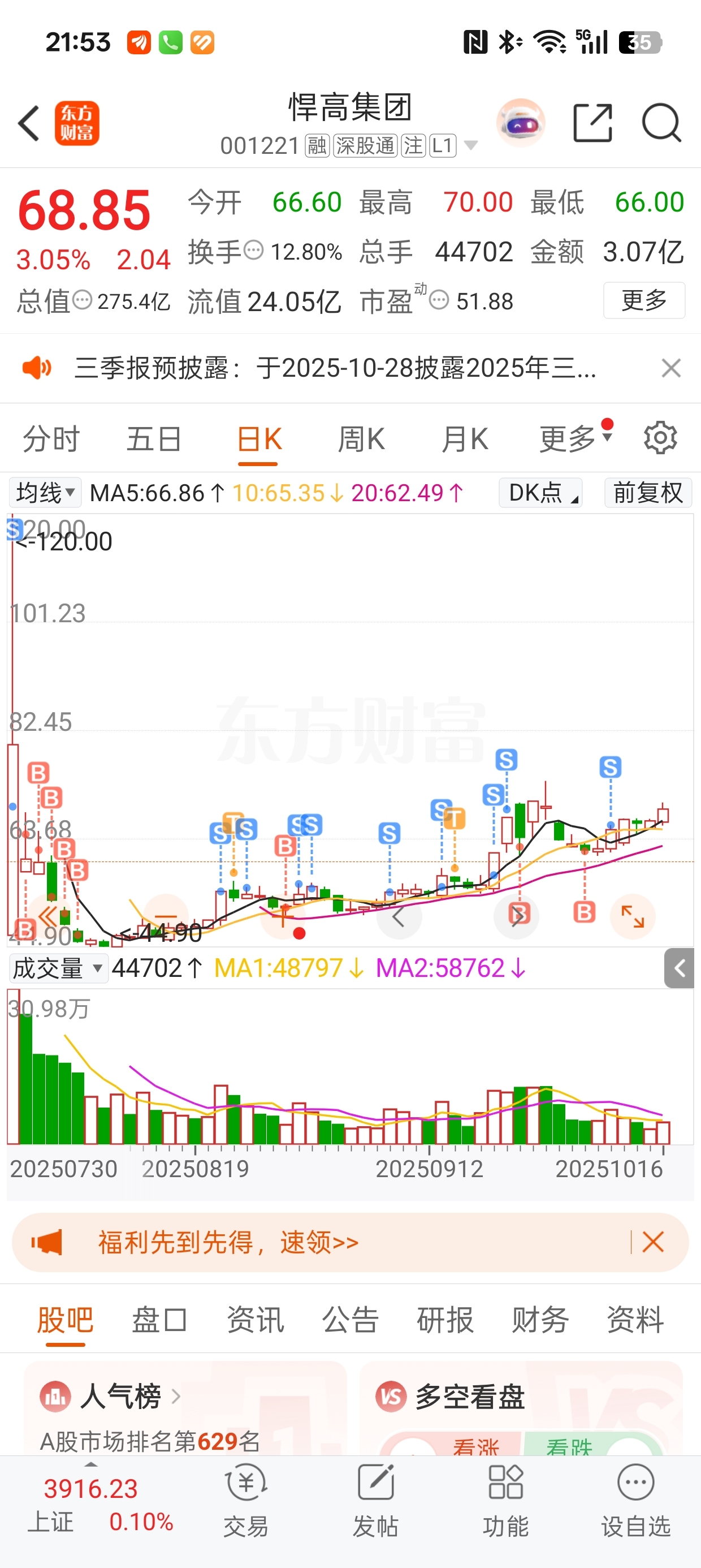 $悍高集团(SZ001221)$ 从第一天中签到今天,基本上保持了不离不弃,涨停板出完了的,第二天都开始逐步又加回来!今年30%的利润都是汉高祖给的!看好高送转预期!