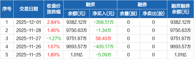 悍高集团:融资净偿还368.51万元,融资余额9382.12万元(12-01)
