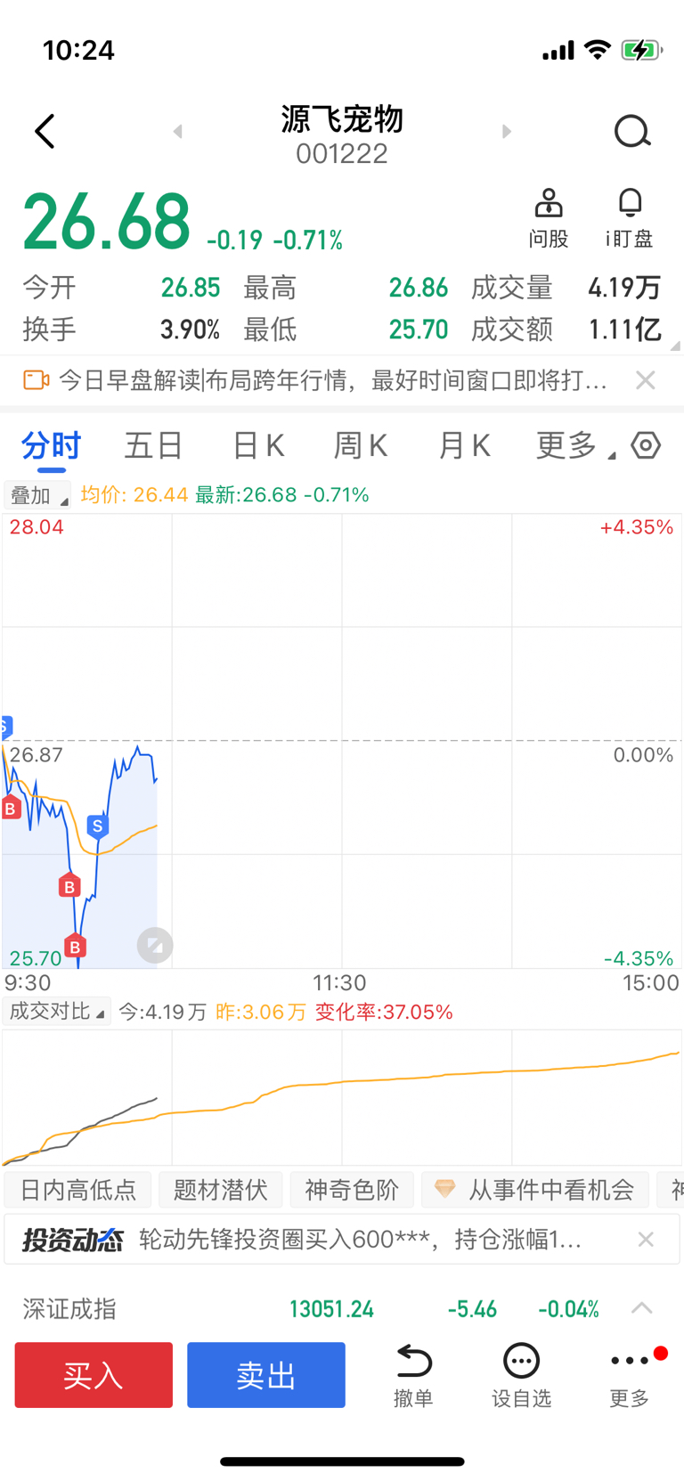 $源飞宠物(SZ001222)$ 跌4个点,好吓人呃
