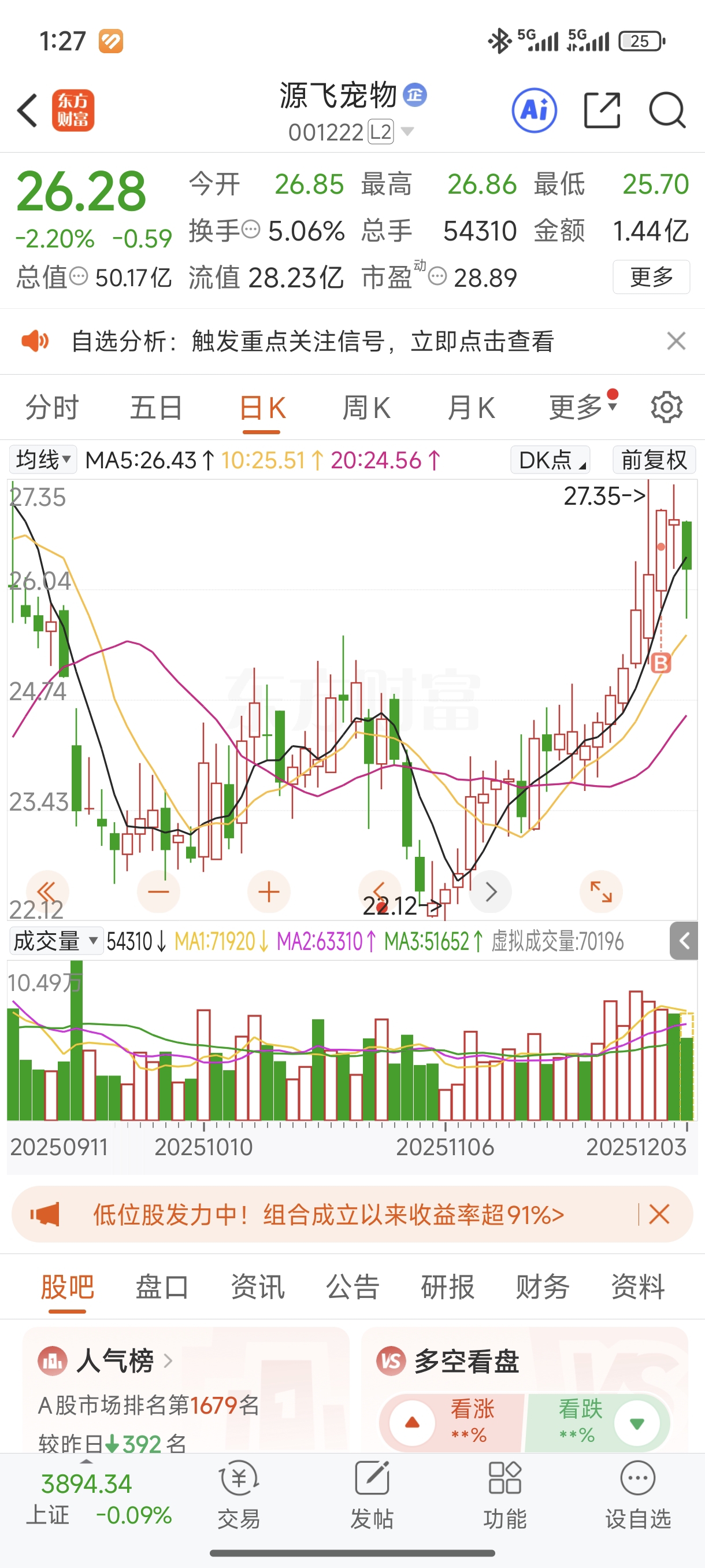 $源飞宠物(SZ001222)$ 对不住了,因为我买了,所以开始跌了。