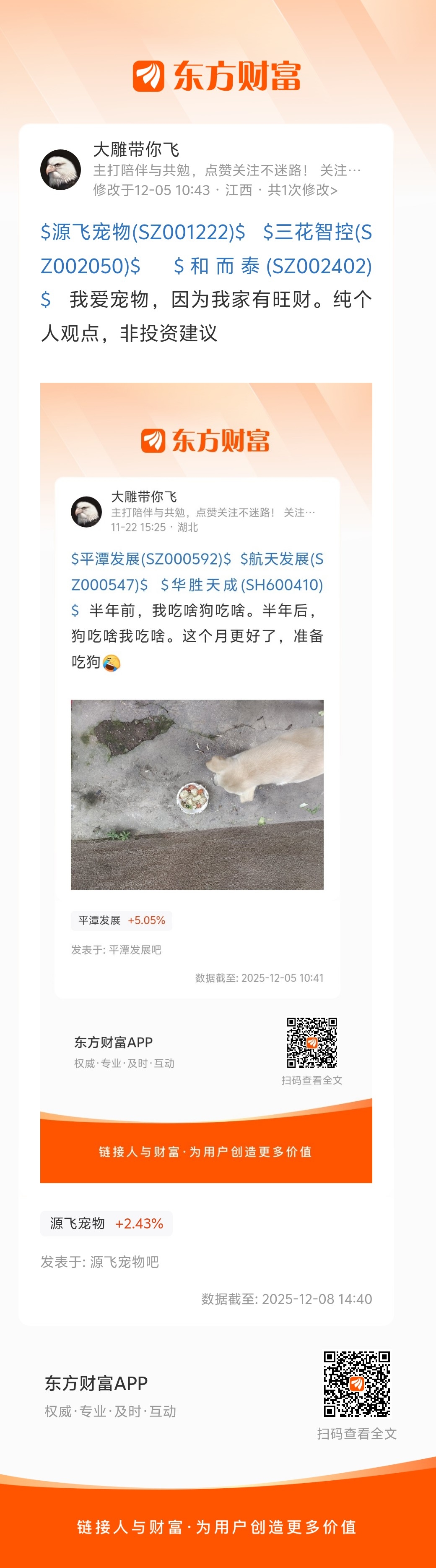 $源飞宠物(SZ001222)$ $航天发展(SZ000547)$ $和而泰(SZ002402)$ 以我家狗子一根火腿肠来祝愿宠物涨停
