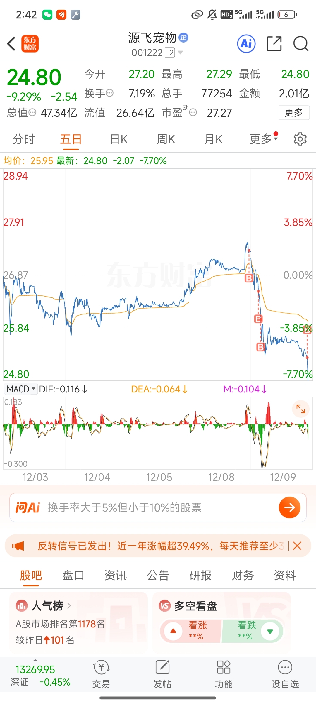 $源飞宠物(SZ001222)$ 不管趋势多好的股,我一买包跌的