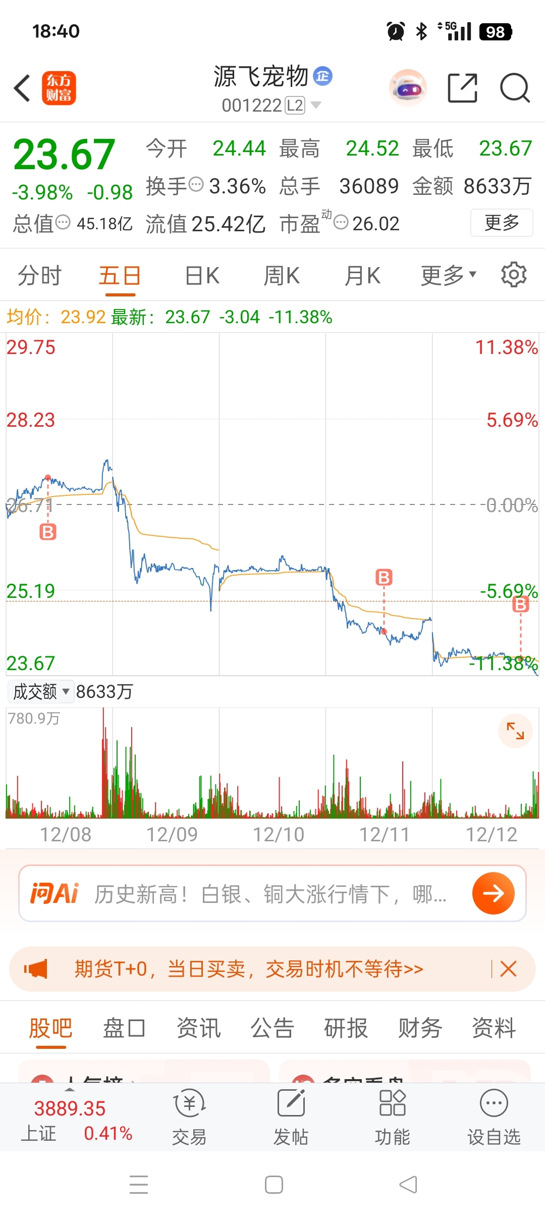 $源飞宠物(SZ001222)$ 越跌越买,怕个球
