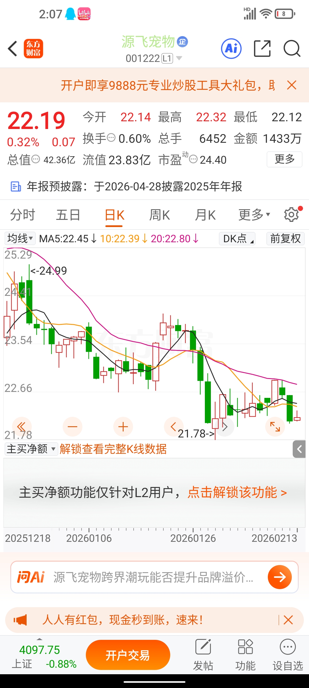$源飞宠物(SZ001222)$ 666源飞发的红包好大