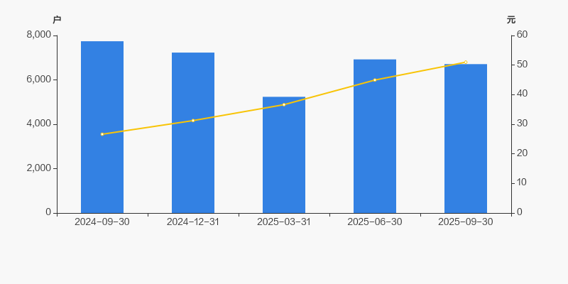2024年9月30日至今,公司股东户数显著下降,区间跌幅为13.32%。2024年9月30日至2025年9月30日区间股价上涨91.46%。