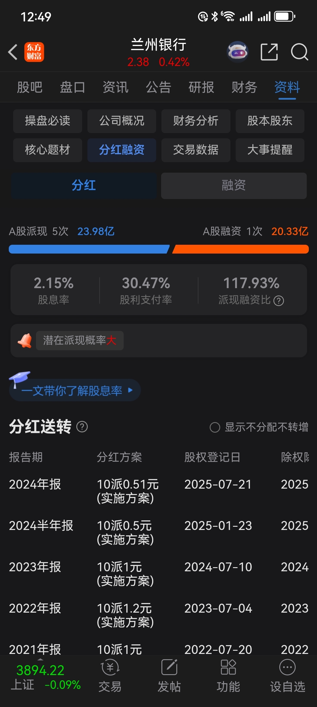 百分之2.5股息,还有超强的分红率,还有强大的稳定新股申购率,简直是黄金价值,赶
