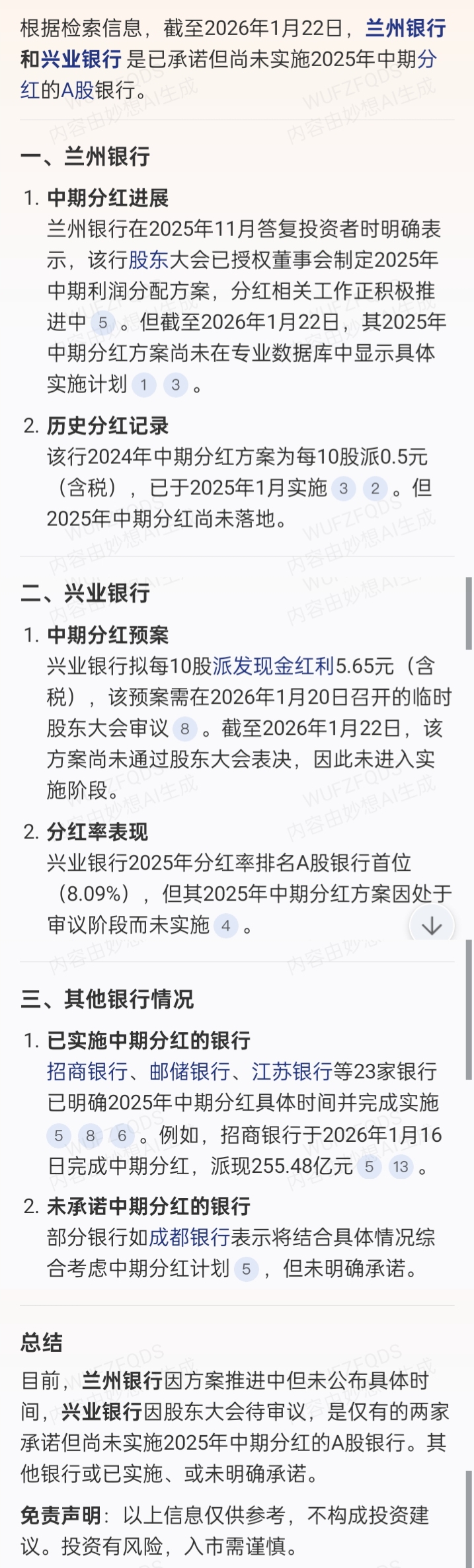 $兰州银行(SZ001227)$ 承诺中期分红的银行还有两家没分?