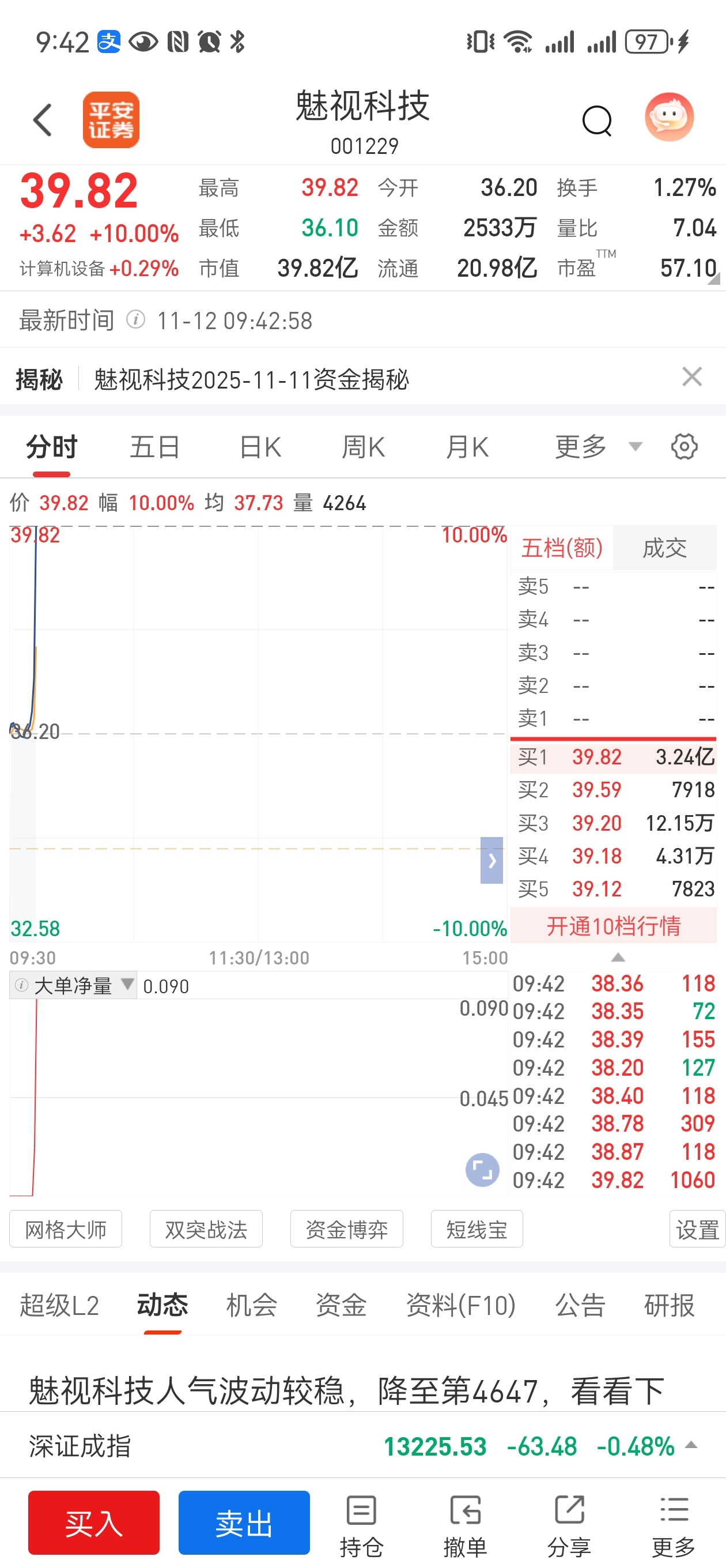 $魅视科技(SZ001229)$ 主力你这么多钱撤单干嘛呢?