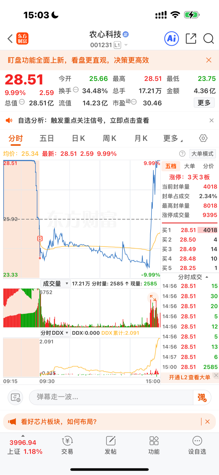 $农心科技(SZ001231)$ 本来以为亏死了一下17cm??