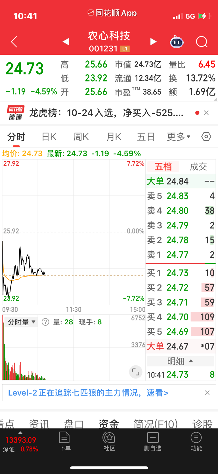 $农心科技(SZ001231)$ 十五个点到手了,明天最差跌停开盘还赚五个点