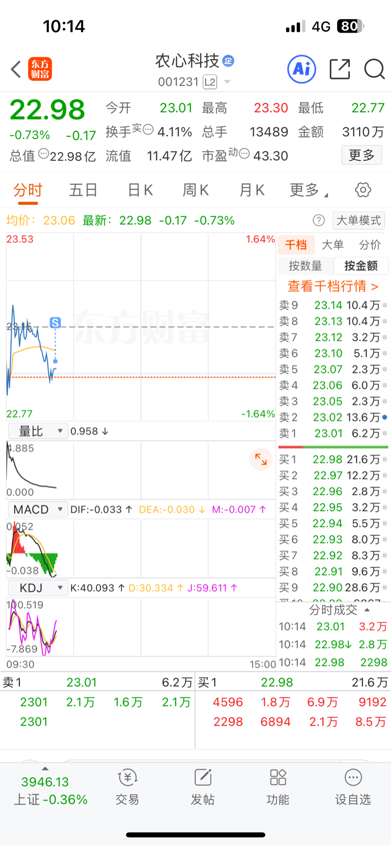 $农心科技(SZ001231)$ 走了,赚五块
