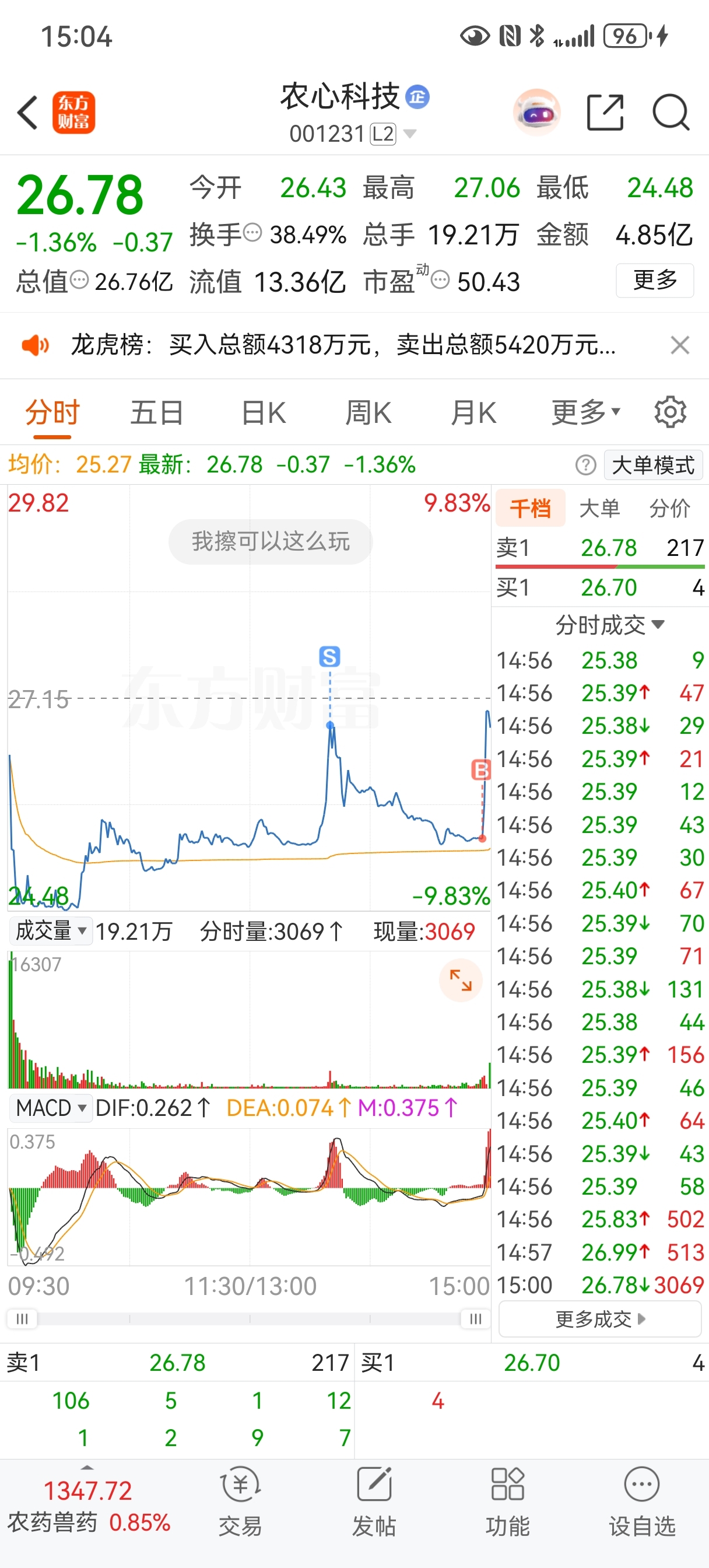 $农心科技(SZ001231)$ 这…拉尾盘?