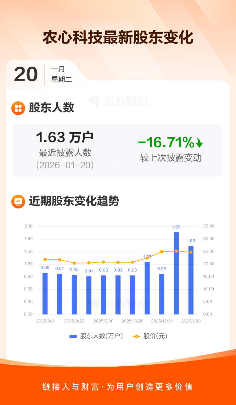 农心科技:截至1月20日最新股东户数1.63万户,较上期减少16.71%