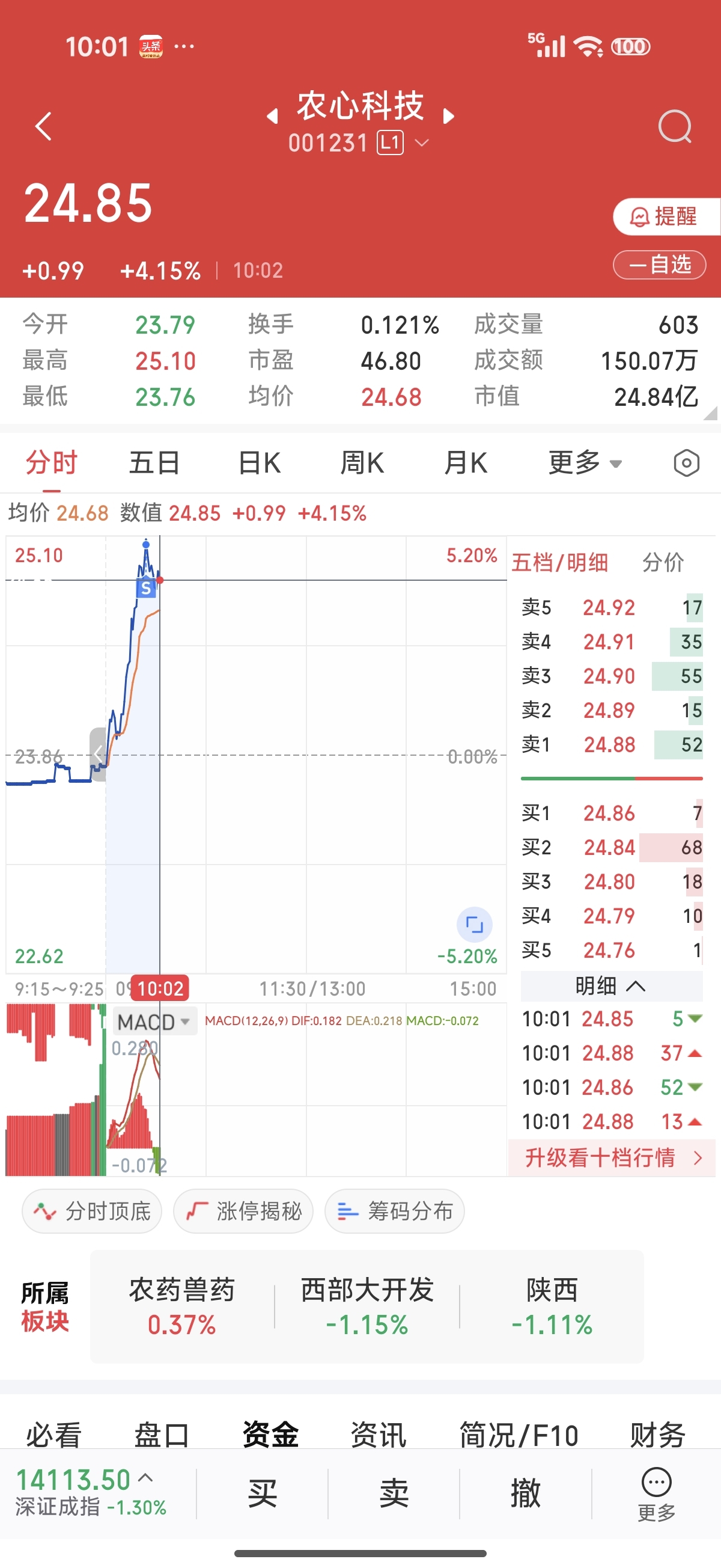 $农心科技(SZ001231)$ 先出来避嫌把。大盘不好看了