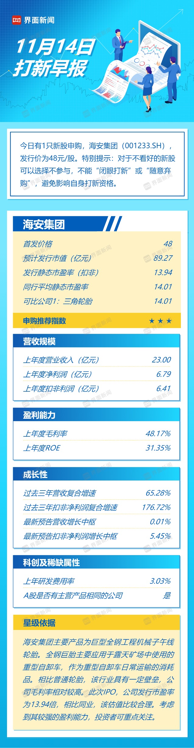打新早报|全钢巨胎龙头海安集团,值得申购吗?