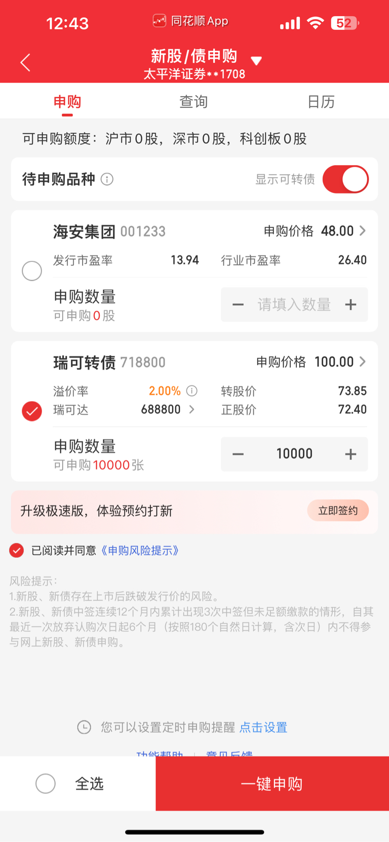 $海安集团(SZ001233)$ 我为什么就申购0股