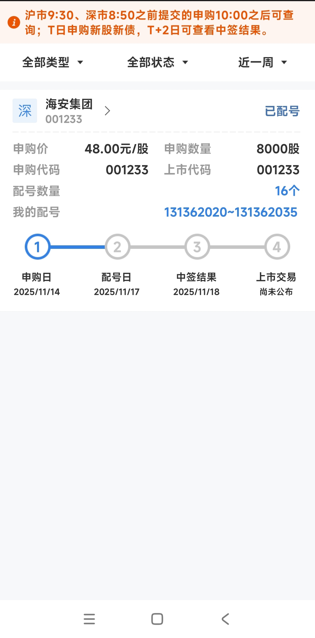 $海安集团(SZ001233)$ 手机短信正常接收,来吧