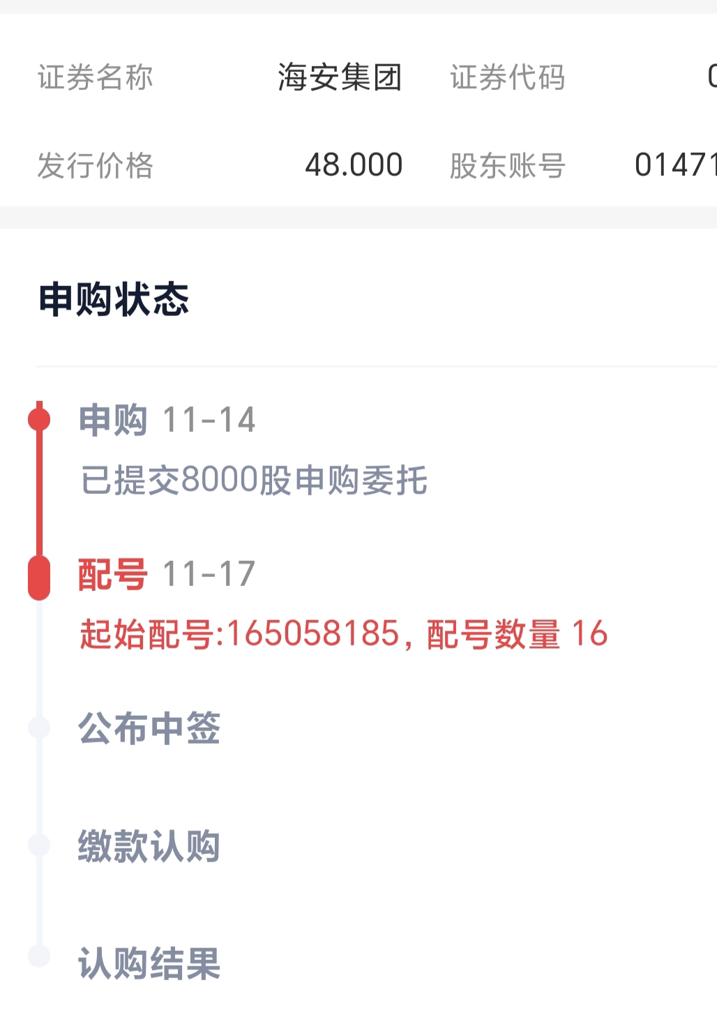 $海安集团(SZ001233)$ 那么漂亮的数字165058185配号16能中签吗