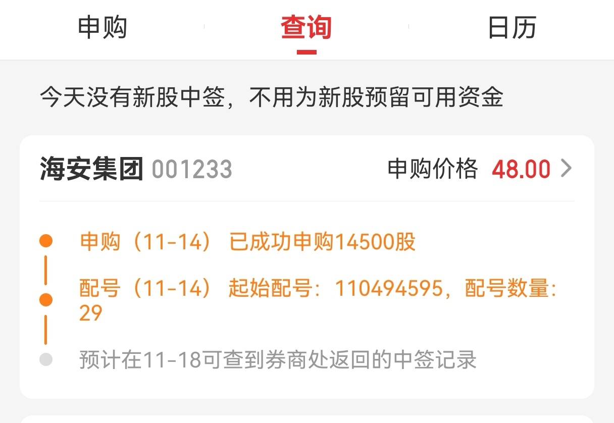 $海安集团(SZ001233)$ 帮忙看看是否有机会中签