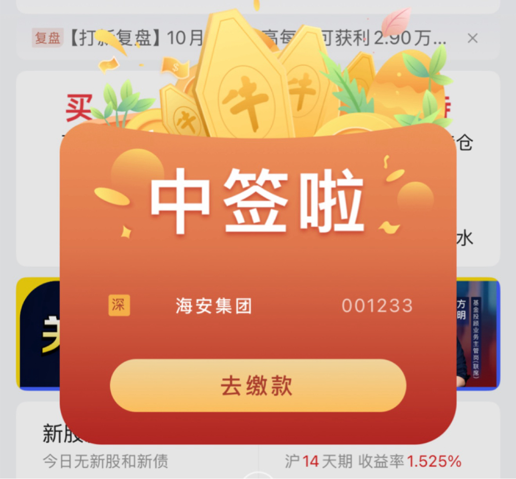 $海安集团(SZ001233)$ 今年中的第五签,太感恩了