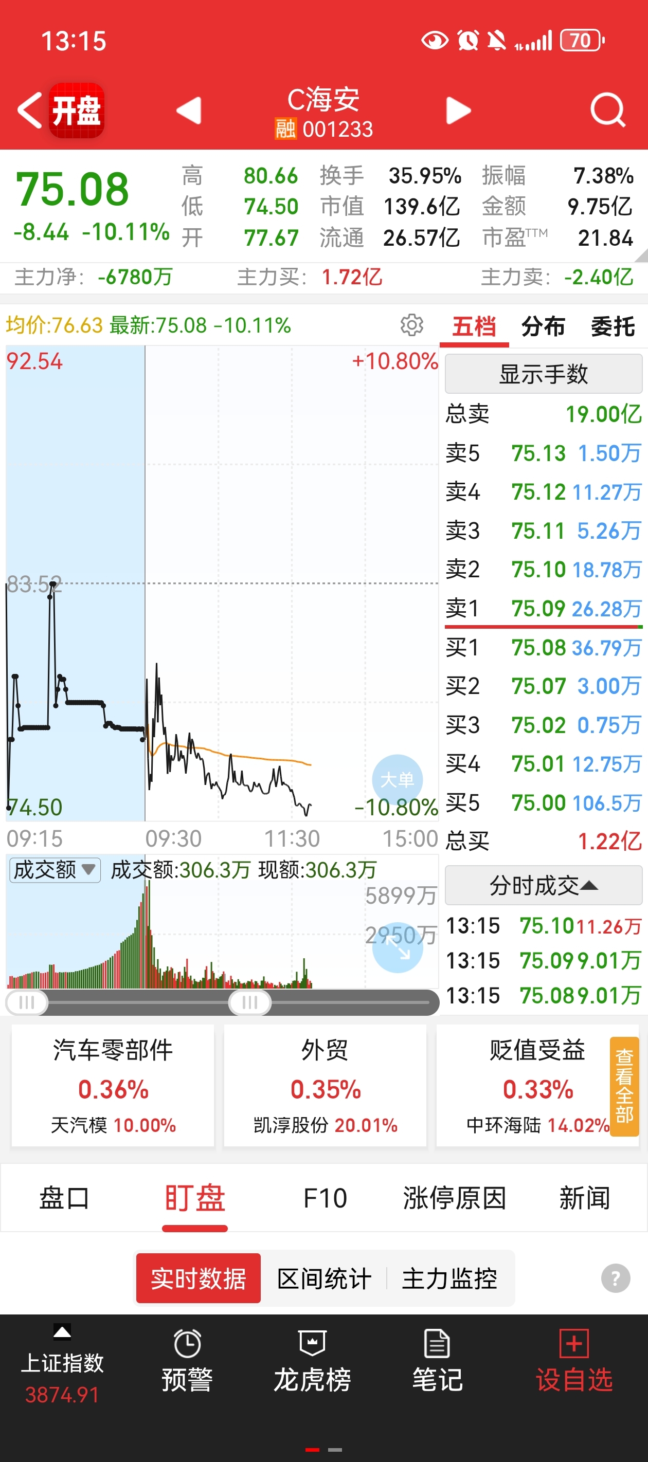 $C海安(SZ001233)$ 19亿挂单,筹码就在几个人手上