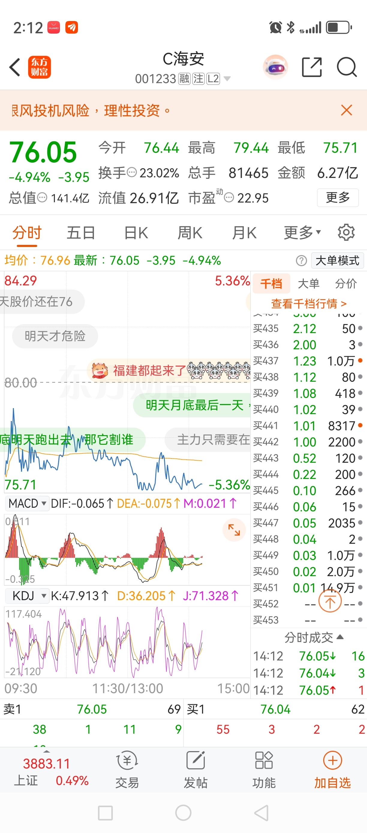 $C海安(SZ001233)$ 0.01挂15万0.02挂2万,0.03挂1万合计18万买单,谁这么坏!显示卖盘2万手,买盘20万手!真坏蛋一枚,