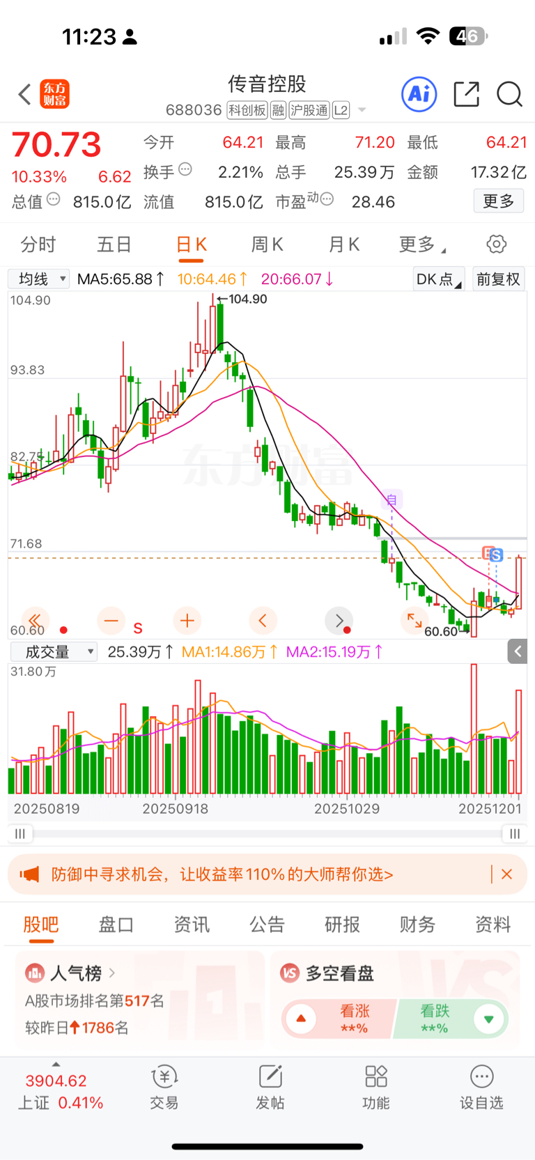 卖掉传音买的海安,买的当天赚了10几个没有跑,现在亏6个