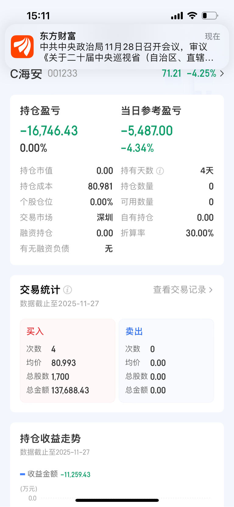 $C海安(SZ001233)$ 就知道还跌,太不争气