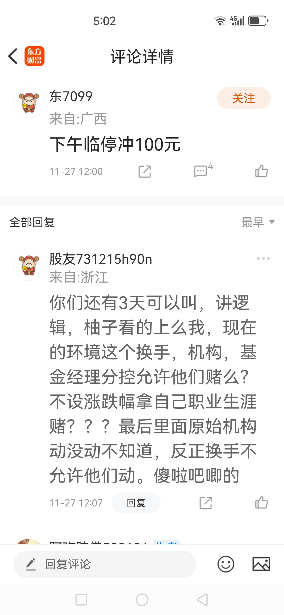 温馨提示: 1.根据《证券法》规定,禁止编造、传播虚假信息或者误导性信息,扰乱证券市场;2.用户在本社区发表的所有资料、言论等仅代表个人观点,与本网站立场无关,不对您构成任何投资建议。用户应基于自己的独立判断,自行决定证券投资并承担相应风险。《东方财富社区管理规定》