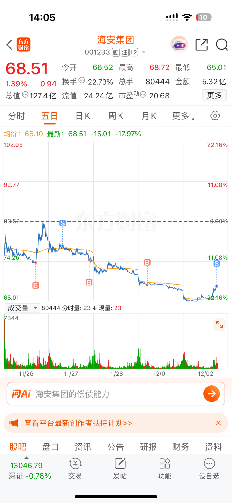 $海安集团(SZ001233)$ 夹着尾巴溜了溜了...