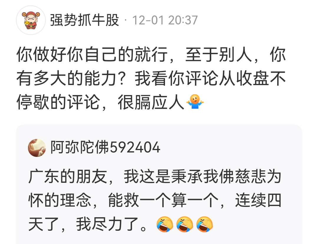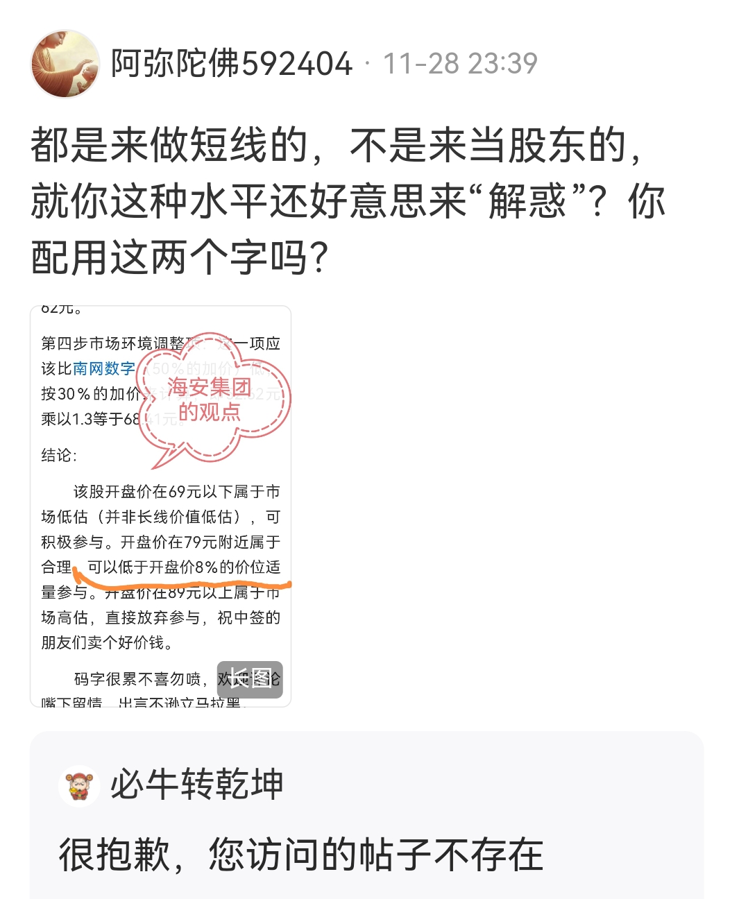 $海安集团(SZ001233)$ 老夫在此最后发一贴,这一贴回答一下福建的“大展宏图金龙鱼”这位朋友,这几天来我为什么见唱多的帖子就去怼一下?今天告诉你,我要看看都有谁在删贴。普通的散户朋友即便使劲唱多、错也就错了,本无恶意,没必要删贴。可某些人不同,他的出发点就是不怀好意,唉!90%以上的散户朋友看股吧都没有我细心。