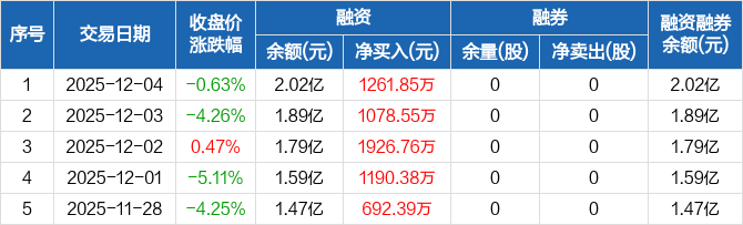海安集团:融资净买入1261.85万元,融资余额2.02亿元(12-04)