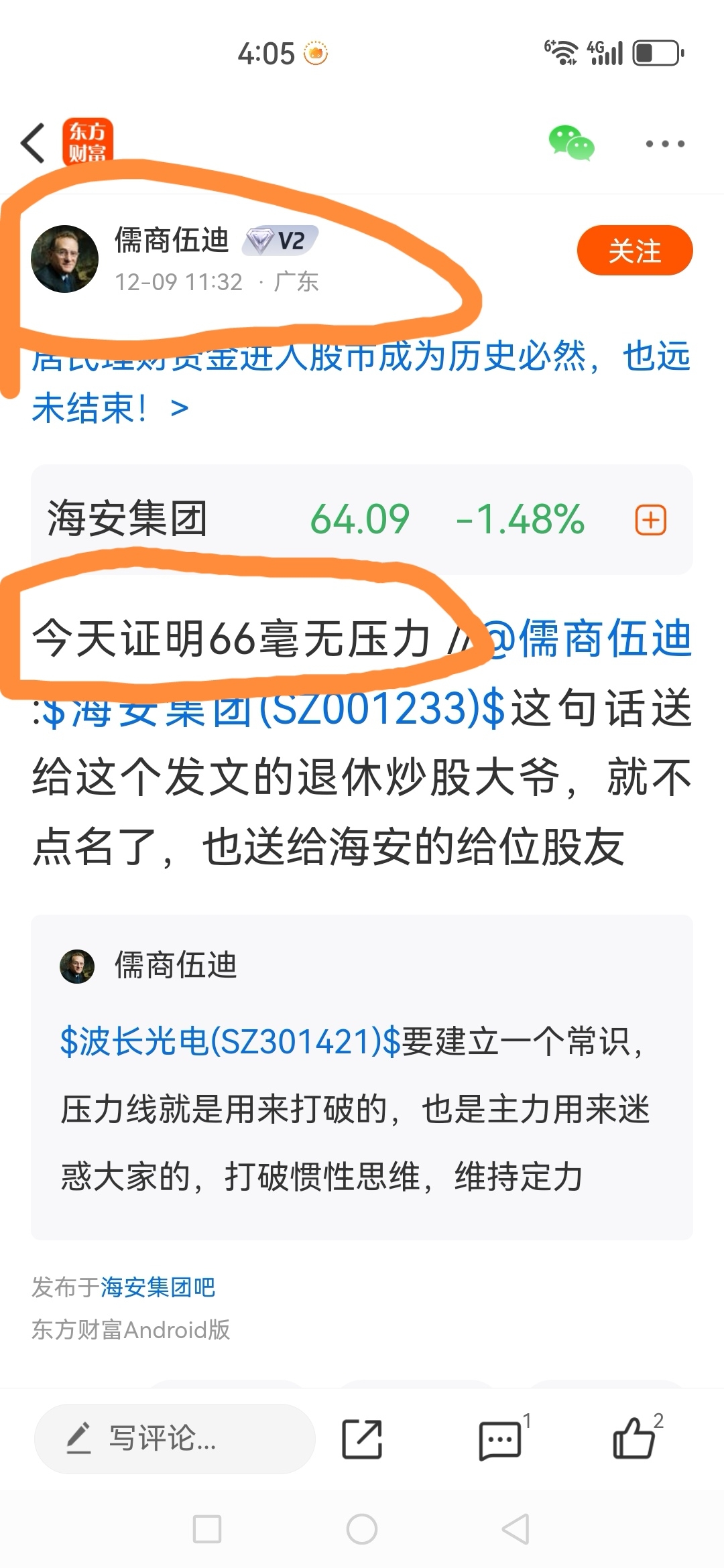 $海安集团(SZ001233)$ 老夫多多少少还是有点技术的,别嘴硬,靠近69元,哪怕是68元、67元你卖就是了,给了大家两次机会了,现在呢?66元都难以见到。