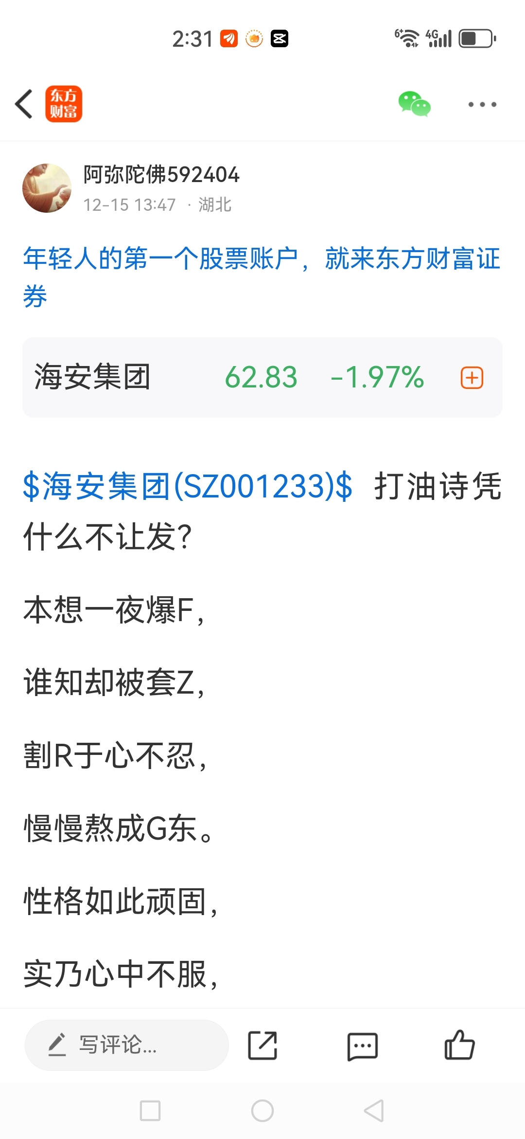 $海安集团(SZ001233)$ 一首打油诗都不让我发