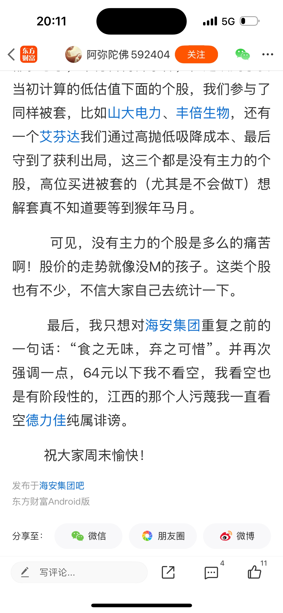 $海安集团(SZ001233)$ 要点脸??说什么别人犯你。你就咋样咋样?咋的?搞得你很委屈一样?你在这个股吧评论多少人,截图别人。都是别人犯你?别人跟你建议不同就冒犯?跌这点亏损你就马上跳出来叫,你自己说的64以下不看空,怎么?又改变主意了?自己被套了多少自己心里清楚,天天在这里发帖评论,别一天到晚跟我沾边!我才在这个股吧发帖就在我这里评论。我都没鸟他,还起劲了?脸呢?