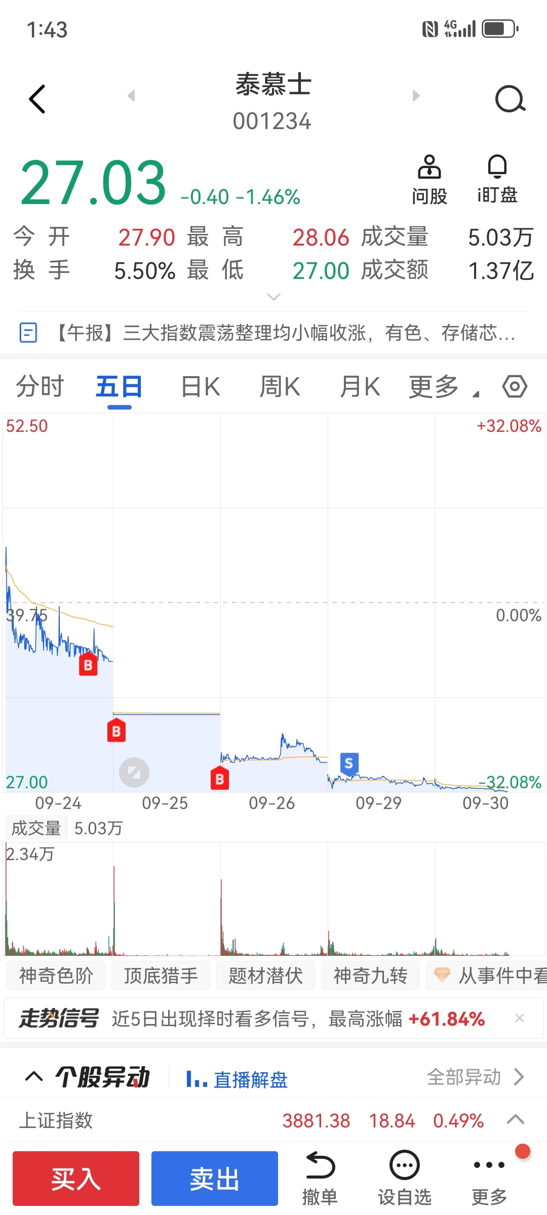 $泰慕士(SZ001234)$ 这是今年碰见最恶心的票 只能割了