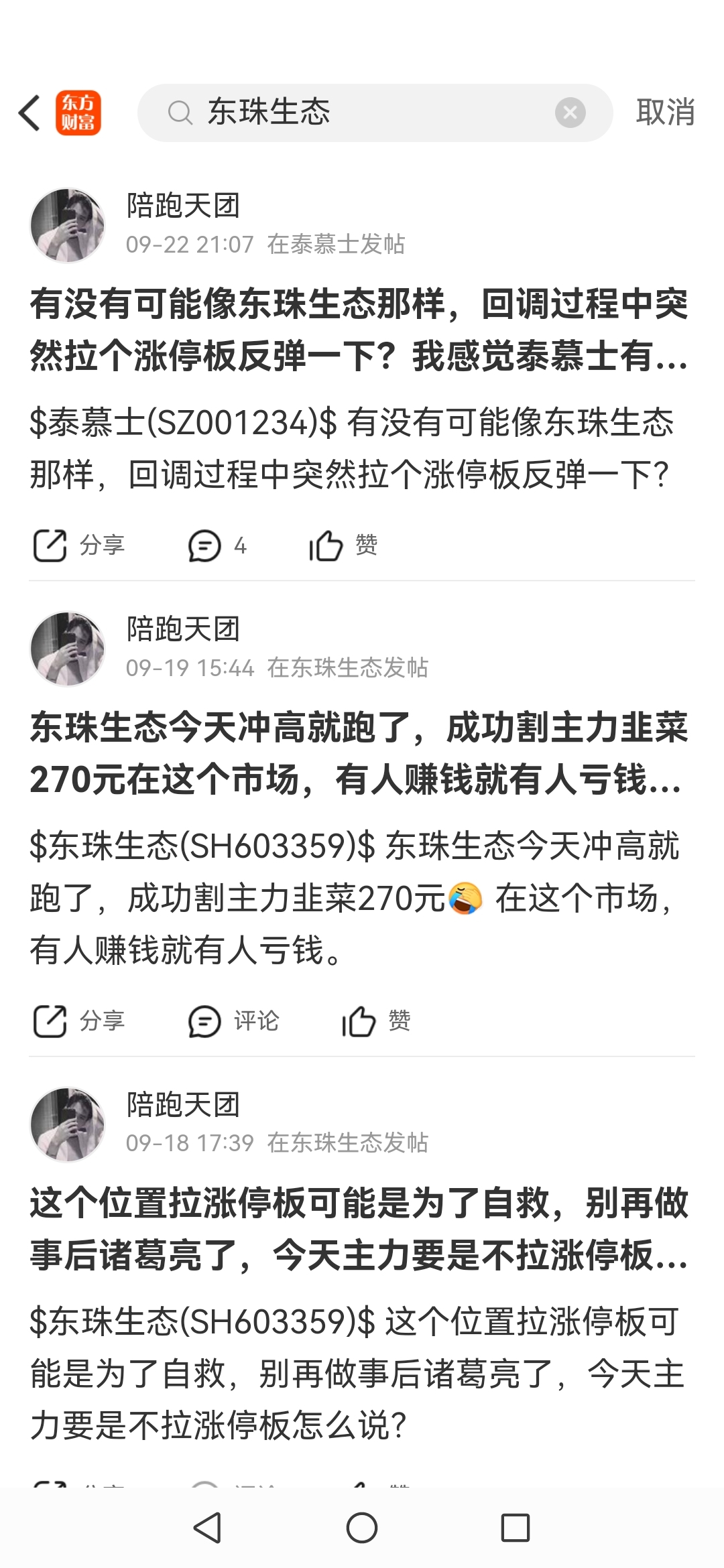 东珠生态,泰慕士都是回调过程突然拉涨停板出货,赚差价难度高,风险大。我现在是记住